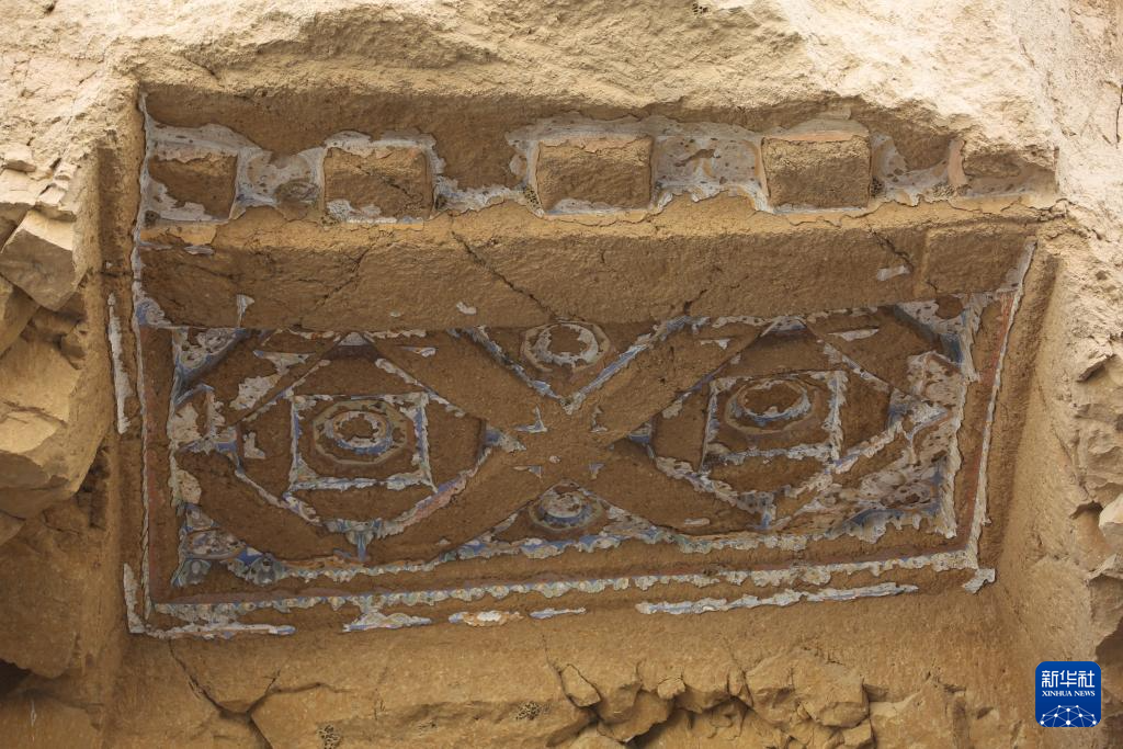 這是6月15日在阿富汗巴米揚省弗拉迪石窟遺址區(qū)拍攝的一處石窟頂部結(jié)構(gòu)與殘存壁畫。新華社發(fā)(塞夫拉赫曼·薩菲攝)