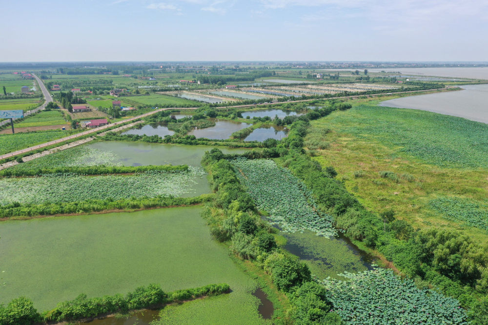 這是在湖南省益陽市大通湖區(qū)河壩鎮(zhèn)拍攝的由中國科學(xué)院設(shè)計的大通湖流域農(nóng)業(yè)面源污水末端強化處理設(shè)施(2023年7月10日攝,無人機照片)。大通湖地處洞庭湖腹地,被稱作“洞庭之心”。新華社記者 薛宇舸 攝
