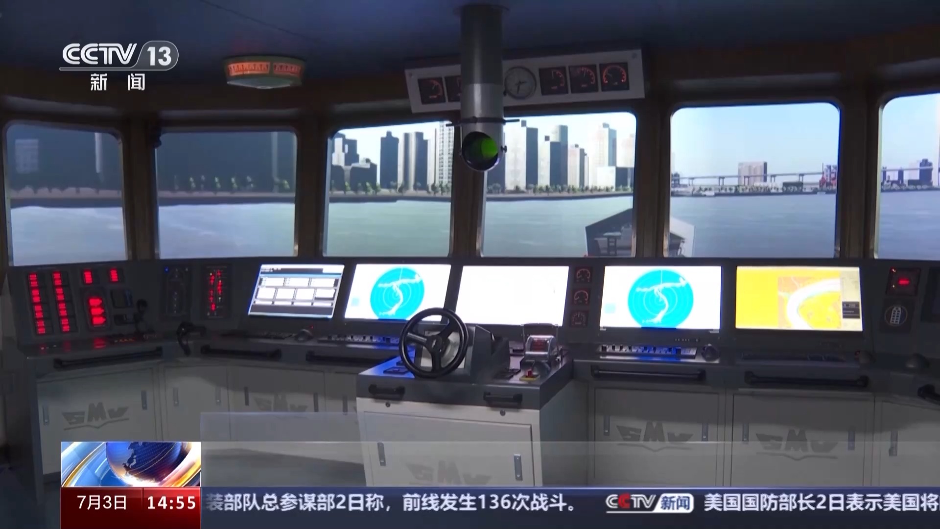 舵輪右手邊的手柄,用來控制主機轉速。操縱臺的左右兩邊,為雷達監(jiān)測顯示屏幕,代替人眼感知環(huán)境,在霧天航行、夜間航行時給駕駛員提供便利。它以大型集裝箱船駕駛室為原型,盡可能還原現(xiàn)代化船舶駕駛工作的真實場景。