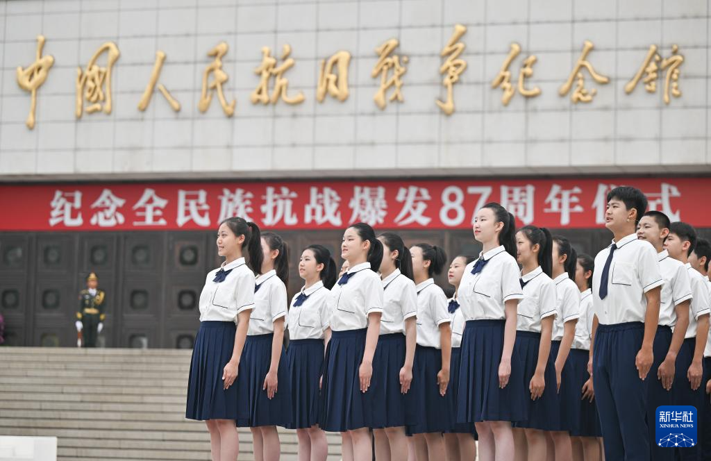 7月7日,首都學生代表參加紀念全民族抗戰(zhàn)爆發(fā)87周年儀式。新華社記者 李響 攝