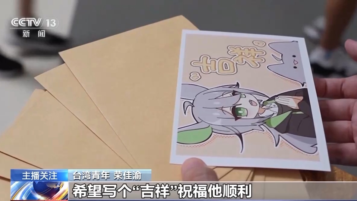 臺灣青年 榮佳渝:他跟我在介紹一些瓷器之類的,可以源源不斷在那邊講,我就覺得好厲害,當(dāng)然也會希望繼續(xù)跟他交流,因?yàn)榭ㄆ潜容^有心意的東西,我就想自己手畫交給對方,寫個(gè)“吉祥”祝福他順利。