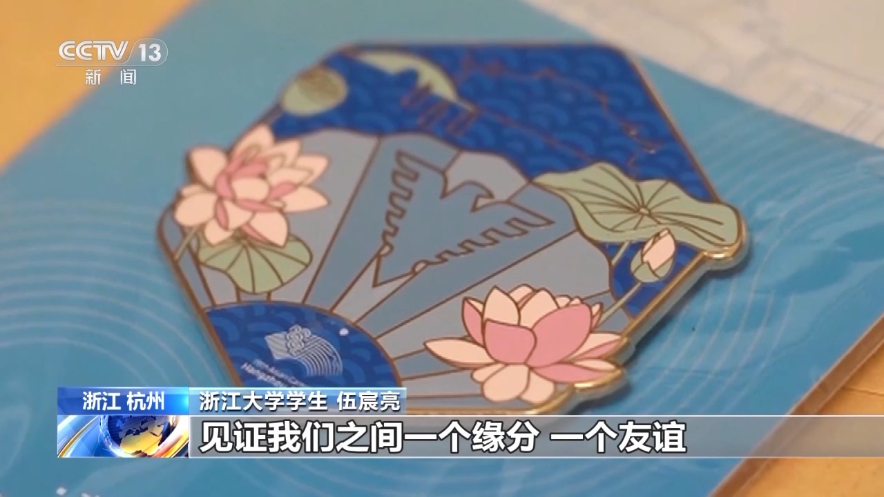 浙江大學(xué)學(xué)生 伍宸亮:這個(gè)徽章是浙江大學(xué)在去年的杭州亞運(yùn)會、亞殘運(yùn)會期間為志愿者設(shè)計(jì)的一個(gè)專屬的徽章,在徽章設(shè)計(jì)的過程中,它是全由我們同學(xué)自己設(shè)計(jì)的,也希望以這枚徽章,見證我們之間的緣分和友誼。