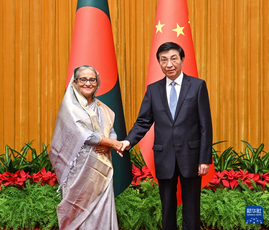 全國(guó)政協(xié)主席王滬寧9日在京會(huì)見(jiàn)孟加拉國(guó)總理哈西娜。