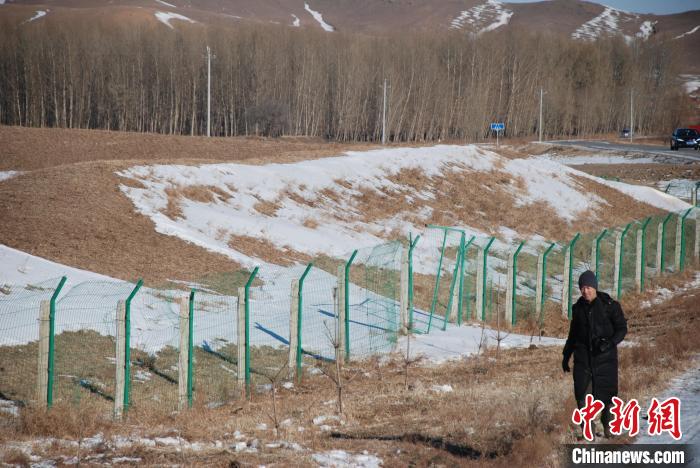 資料圖。圖為2017年,包金泉在吐列毛杜鎮(zhèn)賽音化嘎查境內(nèi),巡查金界壕圍封網(wǎng)圍欄破壞情況?!】朴抑衅煳奈锟脊叛芯克﹫D