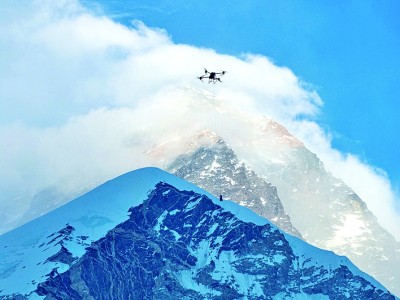 中國民用無人機(jī)完成全球首次珠峰6000米海拔物資運輸。新華社發(fā)