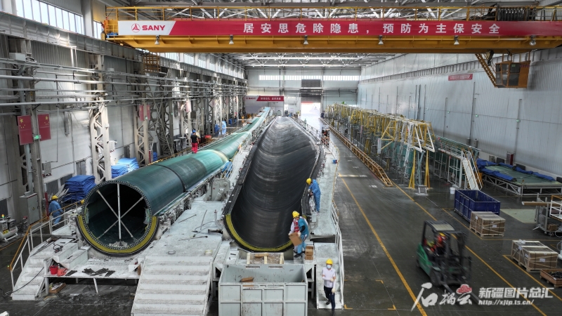 7月12日,在新疆塔城重點(diǎn)開發(fā)開放試驗(yàn)區(qū)先行發(fā)展區(qū),三一(塔城)風(fēng)電設(shè)備有限公司葉片生產(chǎn)現(xiàn)場(chǎng)。代姣美攝
