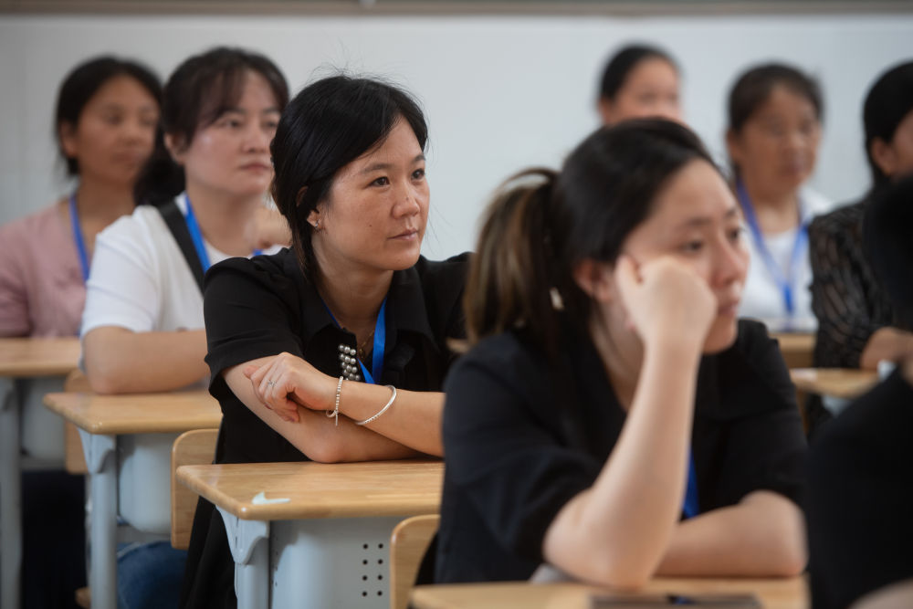 7月2日,湖北省來鳳縣高級中學,學員們在西蘭卡普培訓班聽講。唐洪祥的孫女唐鳴珂為學員們講解西蘭卡普的知識。