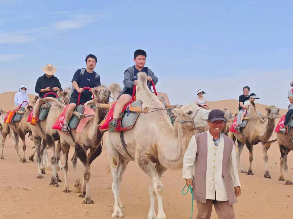如今的老劉,已經(jīng)買了越野車。他每天開著汽車,到景區(qū)上班牽駱駝。