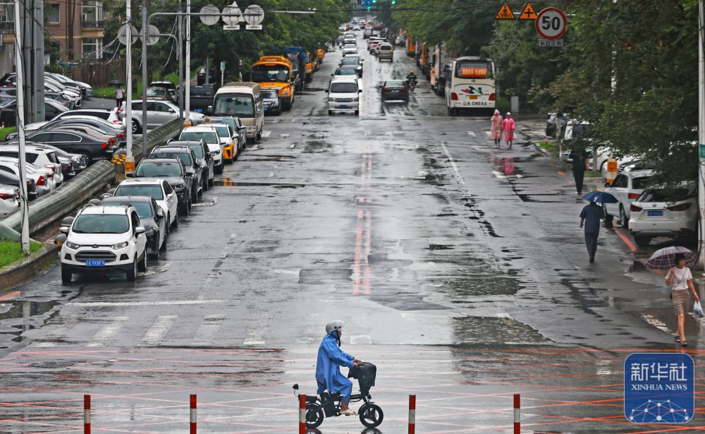 7月28日,在遼寧省沈陽(yáng)市大東區(qū),市民在雨中出行?! ⌒氯A社記者龍雷攝