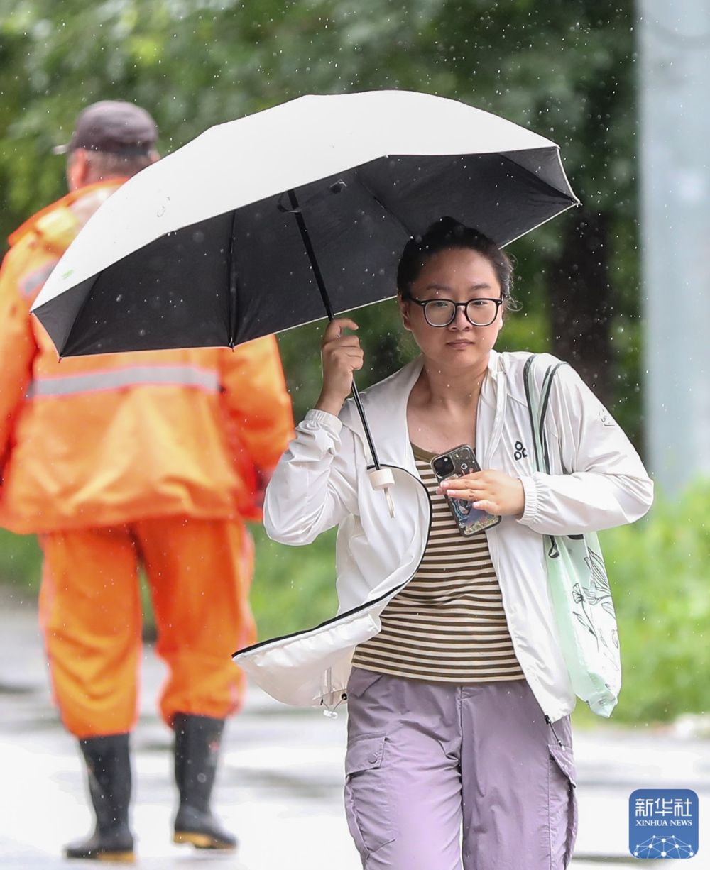 7月28日,在遼寧省沈陽(yáng)市和平區(qū),市民在雨中出行?! ⌒氯A社記者 楊青 攝