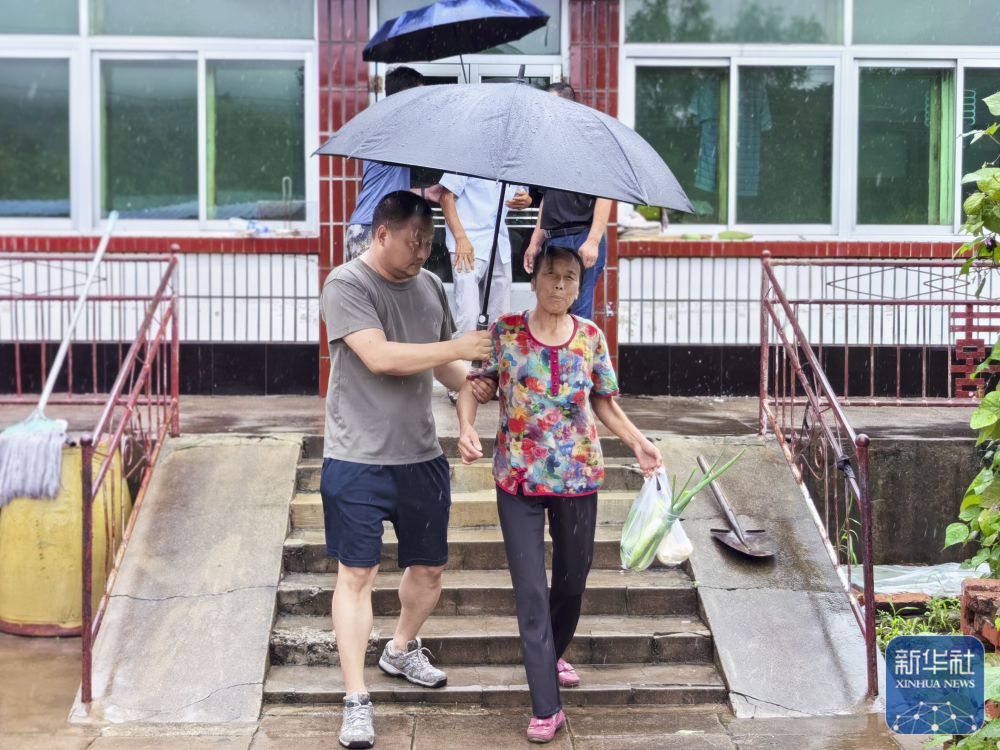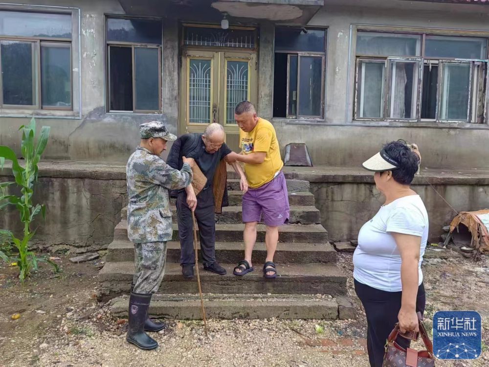 7月27日,在遼寧省鐵嶺縣雞冠山鄉(xiāng)業(yè)爾興村,村干部在轉(zhuǎn)移受災(zāi)群眾?! ⌒氯A社發(fā)