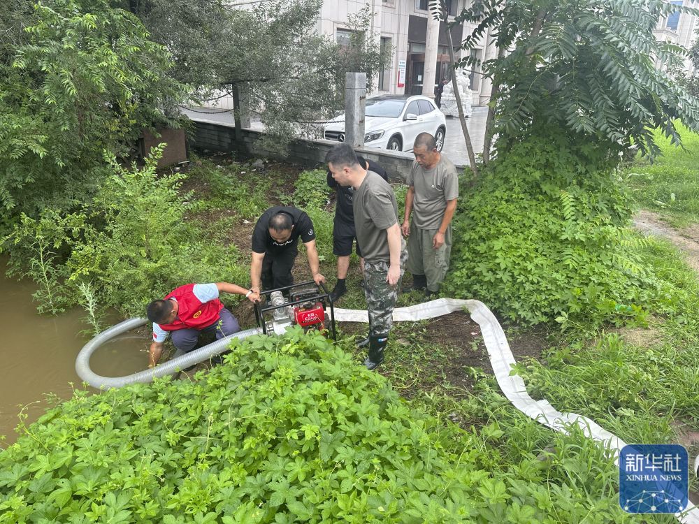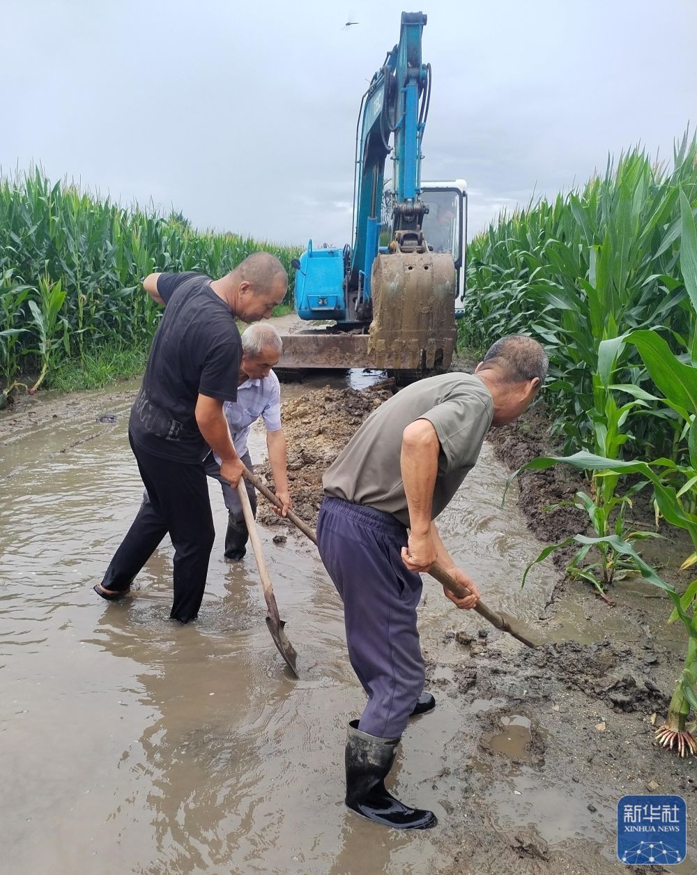 7月28日,鐵嶺市昌圖縣昌圖鎮(zhèn)八家子村組織黨員干部來(lái)到低洼耕地進(jìn)行排水,減少農(nóng)田內(nèi)澇。 新華社發(fā)
