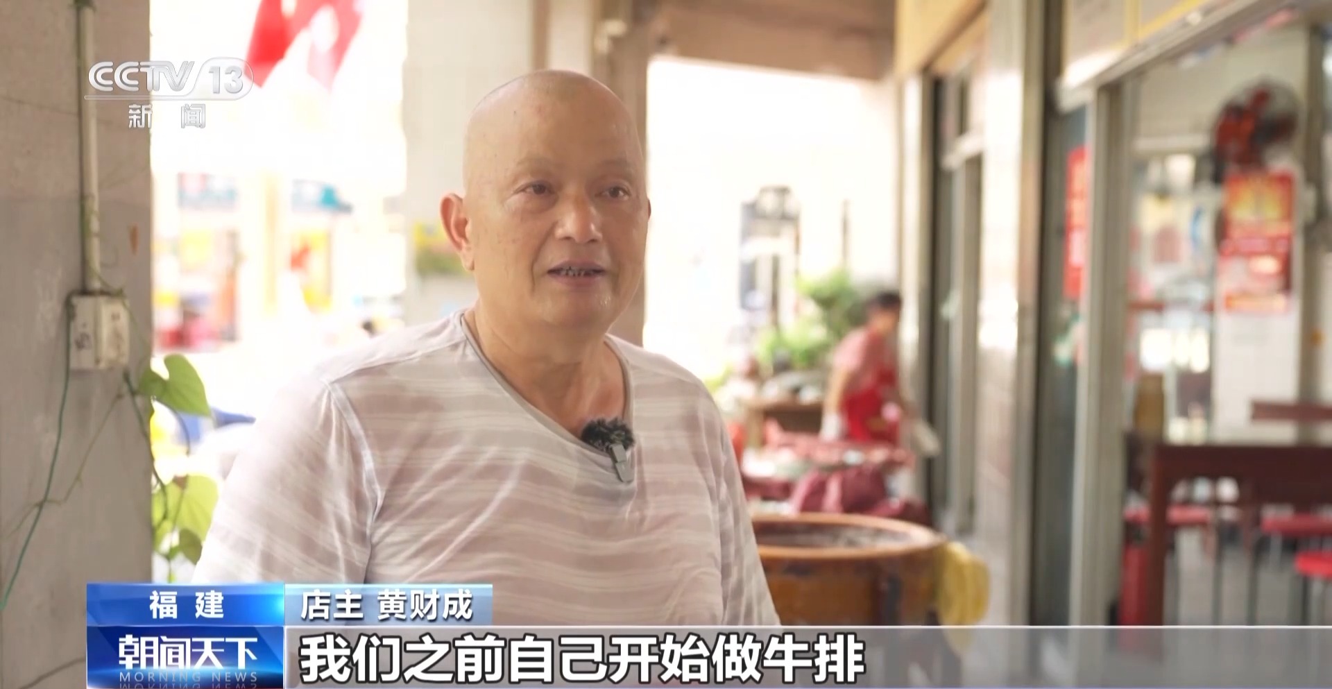 店主 黃財(cái)成:一百多年前國外的人來泉州經(jīng)商,基本上都是吃牛肉的。我們之前自己開始做牛排、牛肉羹、牛雜。當(dāng)年我爺爺去南洋幫廚,再來到我們這邊改良,特別是華僑大學(xué)的留學(xué)生,周六周日都來我們這家店吃。