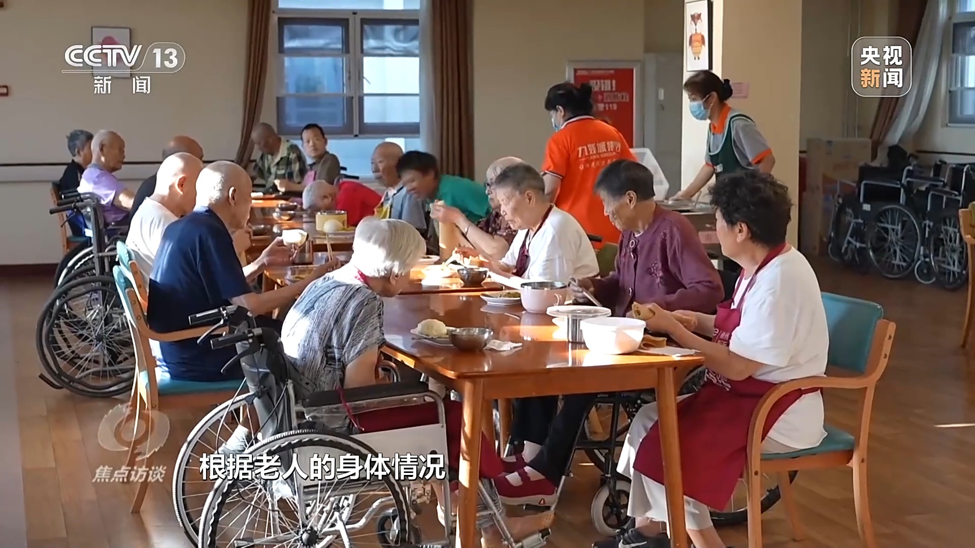 江蘇徐州新沂市鐘吾養(yǎng)老服務(wù)中心院長(zhǎng) 范臣:我們根據(jù)老人的身體情況有糖尿病定制的餐食、老年慢性病的餐食,每周有膳食委員會(huì)采集老人最喜歡吃什么,從而制訂更符合老人口味的餐食。早餐我們準(zhǔn)備的是兩個(gè)菜,保證每天一個(gè)雞蛋,還有面食,中餐是四個(gè)菜,兩葷兩素,晚餐是一葷一素,吃好的狀態(tài)下,也要吃得更健康、更有營養(yǎng)。