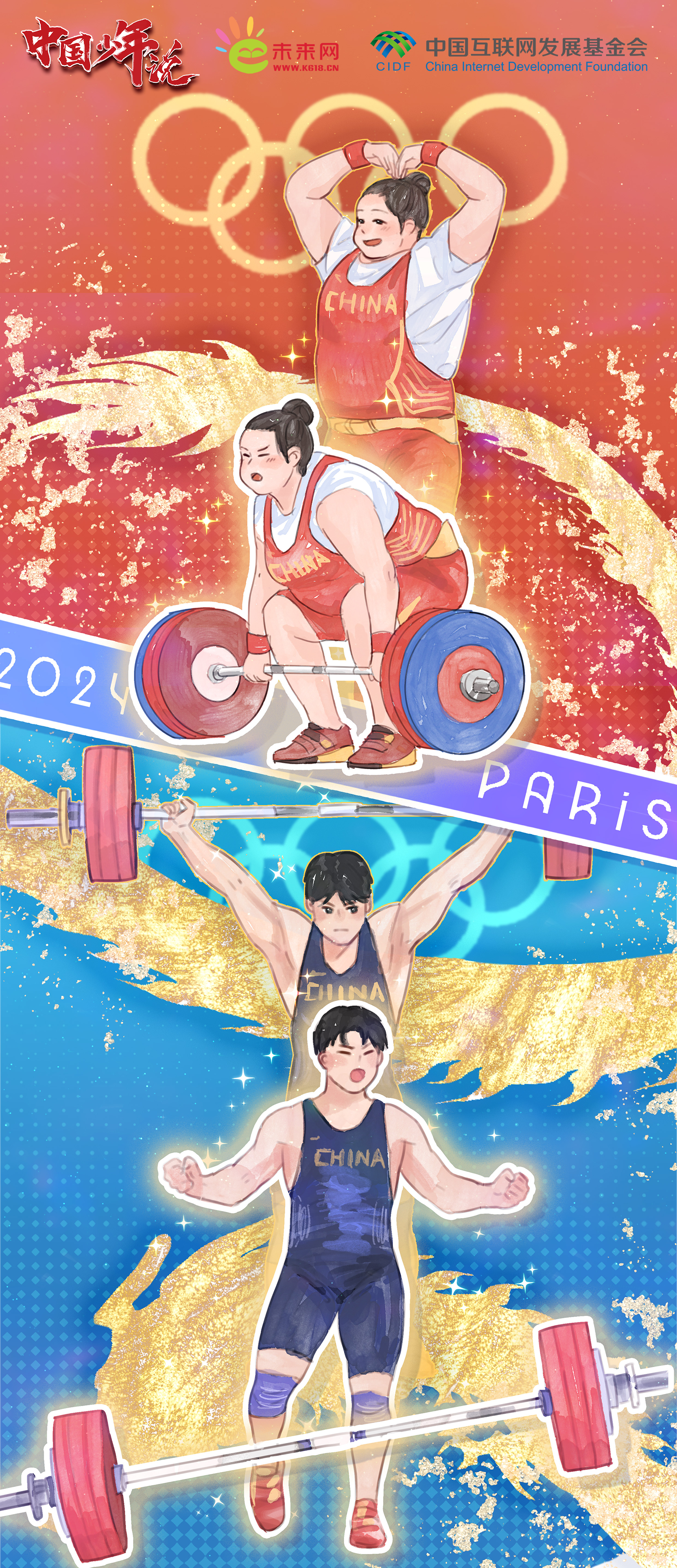 每一次杠鈴的舉起,都是對體能極限的挑戰(zhàn);每一次重量的征服,都是對自我潛能的突破。李雯雯分享訓(xùn)練日常時(shí),經(jīng)常使用一個(gè)叫“雯扎雯打”的話題詞,這也正是她一路走來,最真實(shí)而生動的寫照。從在舉重亞錦賽刷新女子87公斤以上級三項(xiàng)世界紀(jì)錄,到在東京奧運(yùn)會奪冠并打破三項(xiàng)奧運(yùn)紀(jì)錄,再到在巴黎奧運(yùn)會上克服傷病造成的心理和身體上的障礙成功衛(wèi)冕,展示王者歸來的風(fēng)范,擁有碾壓級實(shí)力的她,一次次地將責(zé)任扛在了肩上,也將國家榮譽(yù)穩(wěn)穩(wěn)地舉了起來。同樣,劉煥華在3年內(nèi)橫跨5個(gè)級別完成升級,并最終在巴黎奧運(yùn)會上“舉”起了這枚極具分量的金牌背后,是他克服了不斷增重的痛苦、舉重訓(xùn)練的枯燥,更以“拼命三郎”的毅力和決心進(jìn)行自我錘煉。巴黎奧運(yùn)會之前,中國男舉還沒有100公斤以上級別的奧運(yùn)金牌,第一次站上奧運(yùn)舞臺的他不僅堅(jiān)實(shí)地邁出了這一步,更以卓越的表現(xiàn)向世界宣告了中國舉重不可估量的潛力。