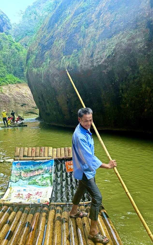 “我們一趟就要撐萬(wàn)把下竹竿,一年下來(lái)要撐三百多萬(wàn)下?!备闪?5年的上清溪排工黃盛騰談起他的排工生活,幽默風(fēng)趣,“上清溪全長(zhǎng)16.5公里,落差比較大,排走得比較緩慢一些,那就比較吃力一些,所以說(shuō)我們的工人叫‘吃飽了撐著’?!?/p>