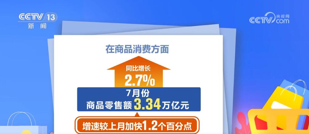 在商品消費(fèi)方面,7月份,商品零售額3.34萬(wàn)億元,同比增長(zhǎng)2.7%,增速較上月加快1.2個(gè)百分點(diǎn)。部分升級(jí)類商品銷售加快,限額以上單位體育娛樂(lè)用品、通訊器材零售額同比分別增長(zhǎng)10.7%和12.7%,增速較上月分別加快12.2和9.8個(gè)百分點(diǎn)。汽車以舊換新政策效應(yīng)持續(xù)顯現(xiàn),7月,新能源乘用車零售量同比增長(zhǎng)36.9%。