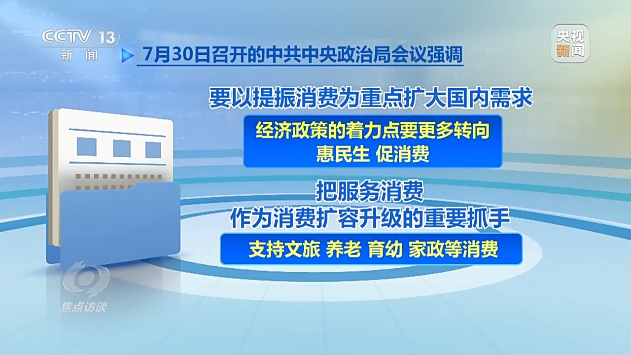 服務消費是釋放消費潛力的重要力量。7月30日召開的中共中央政治局會議強調,“要以提振消費為重點擴大國內需求,經濟政策的著力點要更多轉向惠民生、促消費,把服務消費作為消費擴容升級的重要抓手,支持文旅、養(yǎng)老、育幼、家政等消費。”國務院于8月3日印發(fā)《關于促進服務消費高質量發(fā)展的意見》,提出“著力提升服務品質、豐富消費場景、優(yōu)化消費環(huán)境,以創(chuàng)新激發(fā)服務消費內生動能,培育服務消費新增長點”。這是我國首次專門就服務消費發(fā)展作出系統(tǒng)全面部署的政策文件。