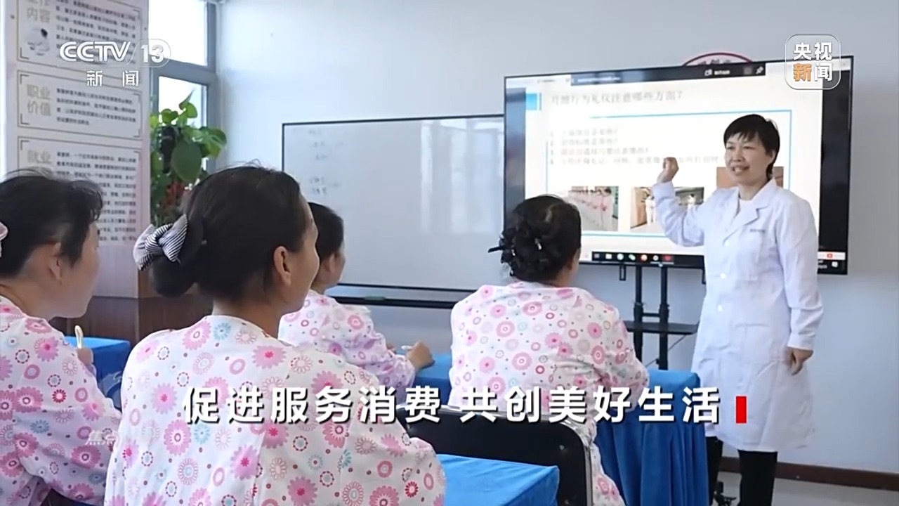 在北京市西城區(qū),來自河北廊坊的月嫂董海菊,正在給寶寶唱兒歌、讀繪本。對于不同年齡段的嬰幼兒護理,董海菊都有著專業(yè)且系統(tǒng)化的了解。