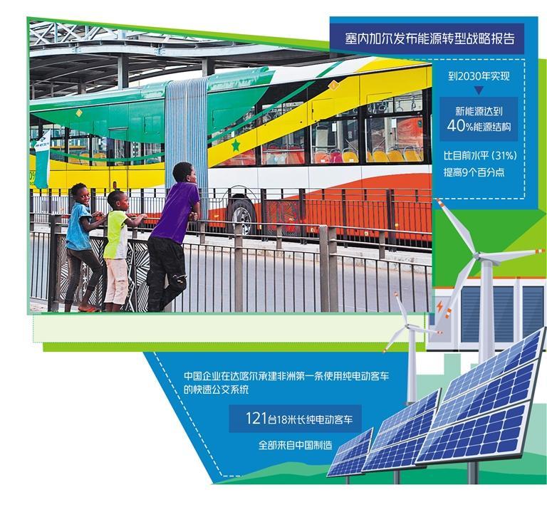 中塞新能源產(chǎn)業(yè)合作持續(xù)深化。中國企業(yè)在達(dá)喀爾承建了非洲第一條使用純電動(dòng)客車的快速公交系統(tǒng)(BRT),121臺(tái)18米長純電動(dòng)客車全部來自中國制造。由中國企業(yè)承建的20個(gè)車站和維保基地也都設(shè)置有中國制造的光伏系統(tǒng)。