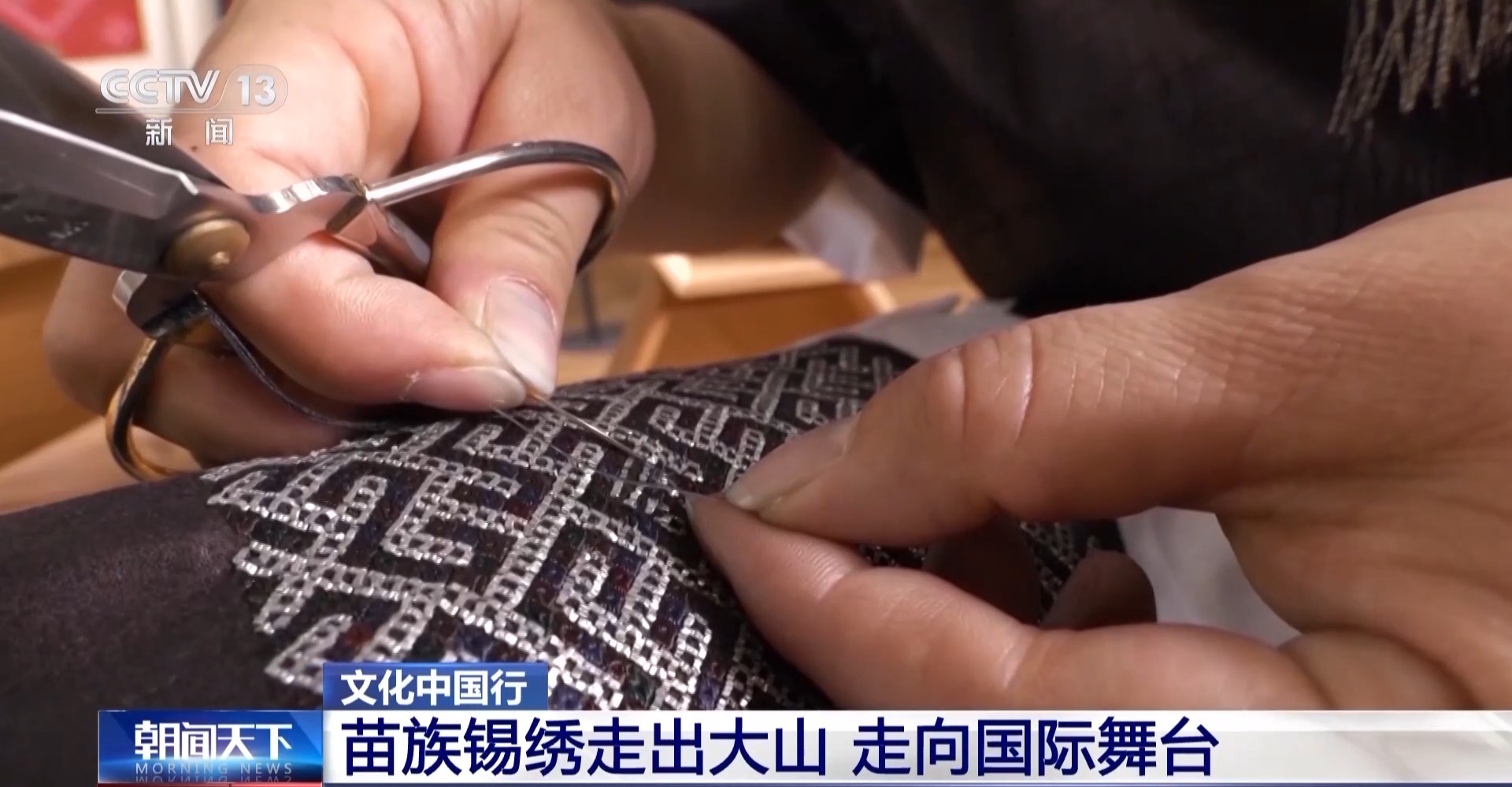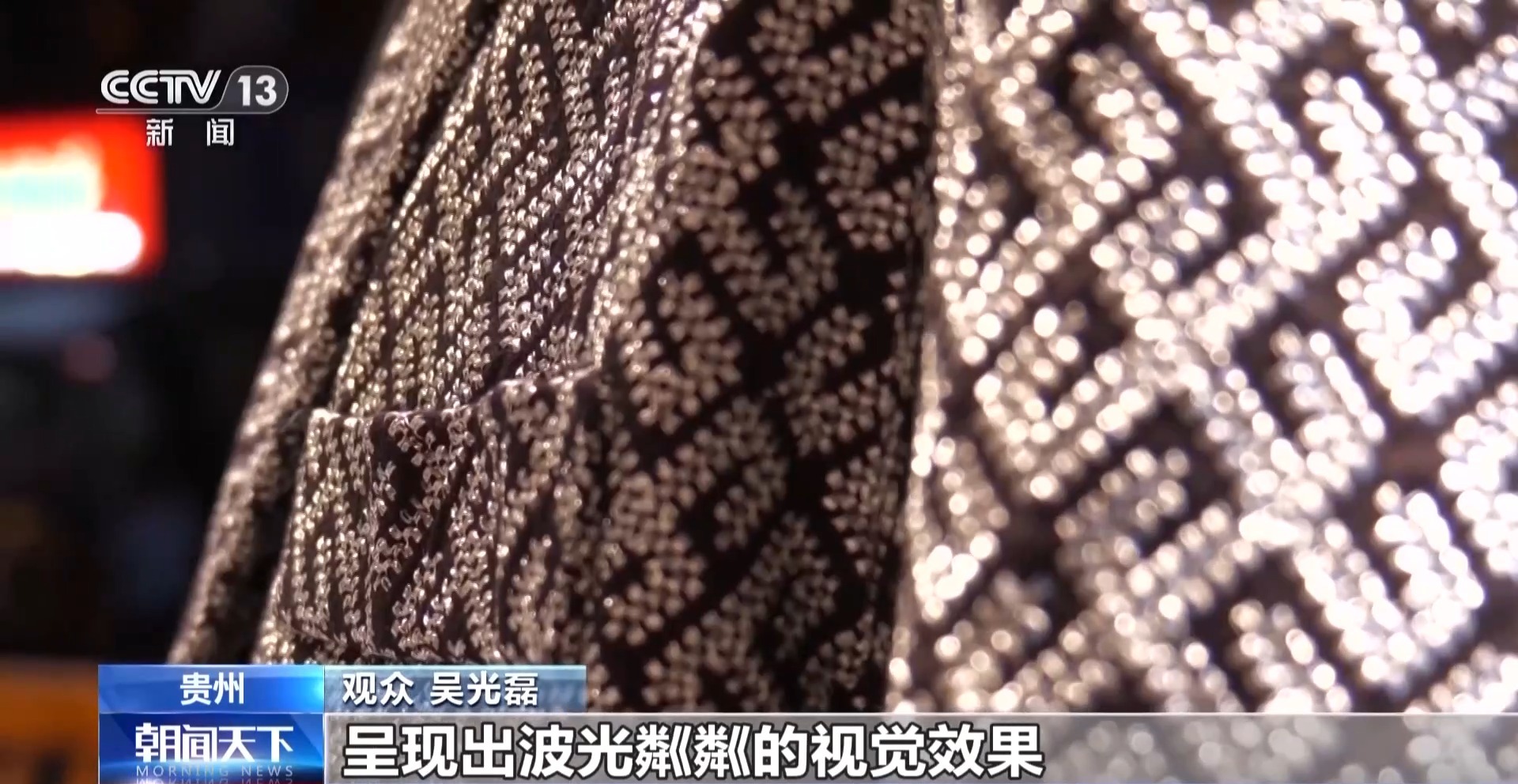 苗族錫繡非遺傳承人 王亨石:按照他要尺寸的大小自己繡出來,繡出來以后寄給他,他自己再設(shè)計(jì)出作品,參展,走向國際時(shí)裝周。我想生在大山里面幾百年的錫繡,今天能走上這么高的國際舞臺,我真的感到很高興而且很自豪。