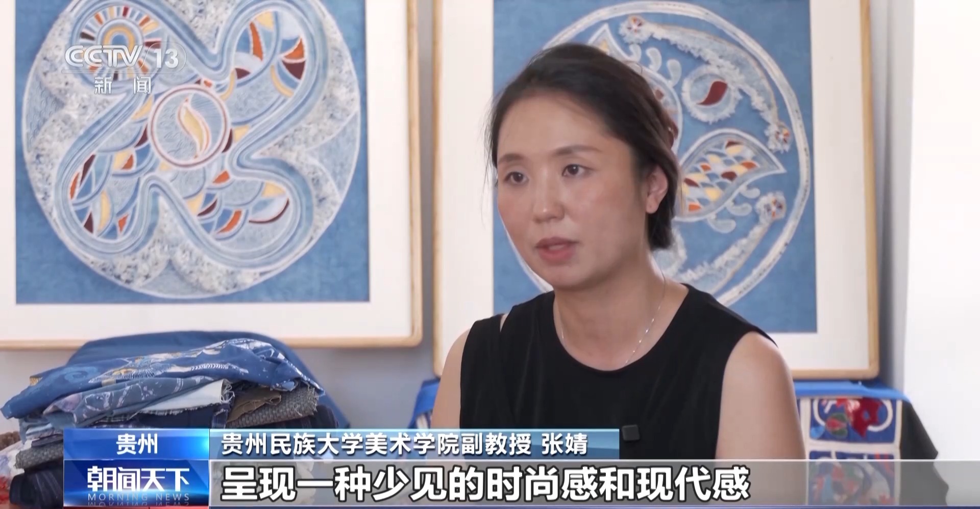 貴州民族大學(xué)美術(shù)學(xué)院副教授 張婧:在它的色調(diào)和質(zhì)感的對撞和對比下,使得劍河錫繡呈現(xiàn)一種少見的時(shí)尚感和現(xiàn)代感。