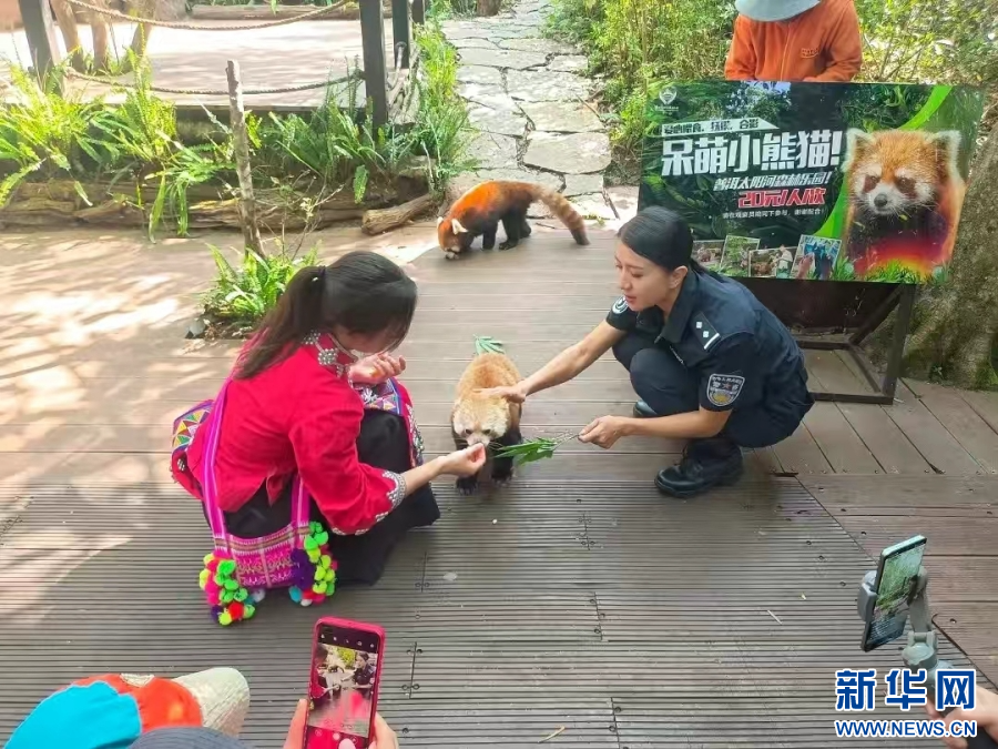 李虹霏在錄制“茶城森警”與小動物的素材(資料圖)。新華網(wǎng)發(fā)(供圖)