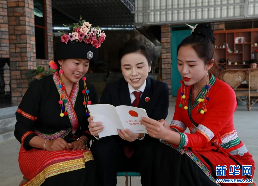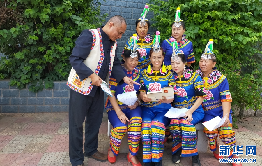 玉喃溜在給群眾做普法宣傳(資料圖)。新華網(wǎng)發(fā)(供圖)