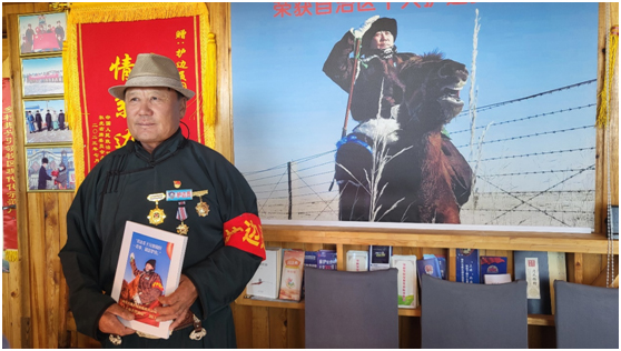 從石頭路走到柏油路,從騎駱駝、馬兒巡邊,到騎摩托車巡邊……圖門的護(hù)邊之路走了許多年,他把父輩們守邊護(hù)邊的精神一直傳承下去,他說:“作為一名共產(chǎn)黨員,作為一個(gè)黨組織信任的‘紅色堡壘戶’,我會(huì)守好邊疆安寧,守護(hù)好這片綠水青山,服務(wù)好家鄉(xiāng)廣大牧民群眾,帶領(lǐng)大家過上幸福生活!”