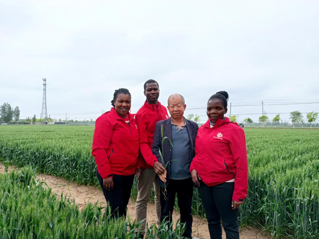 “中非科技小院”留學生庫瓦莉(左一)和同學們在位于河北曲周的農(nóng)戶試驗田和當?shù)剞r(nóng)民學習農(nóng)業(yè)生產(chǎn)技術(shù)間隙合影(5月10日攝)。新華社發(fā)(受訪者供圖)