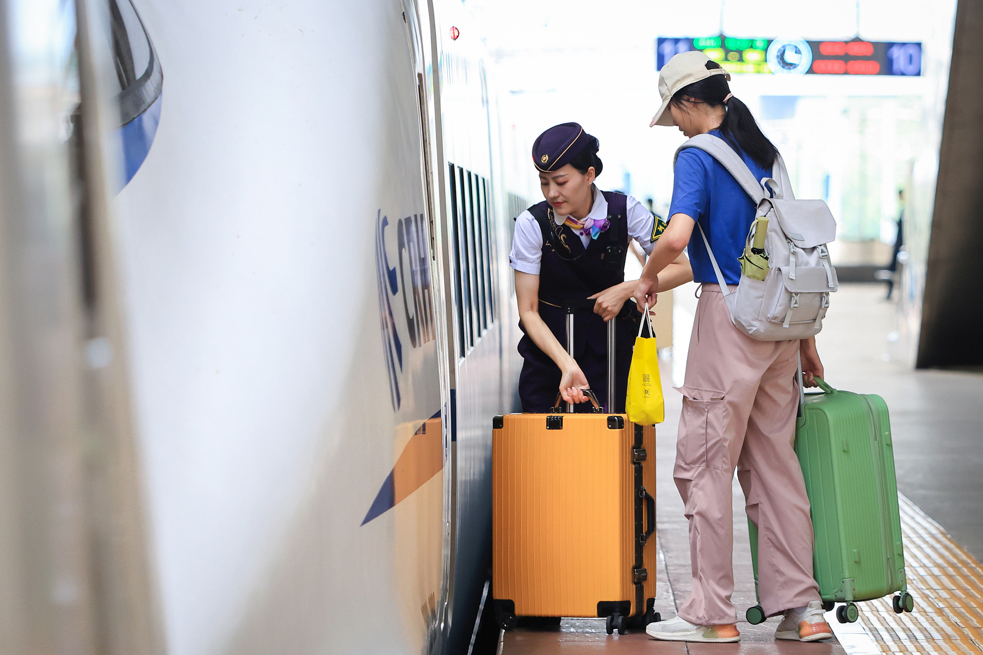 2024年8月31日,旅客在南京火車站乘車出行。