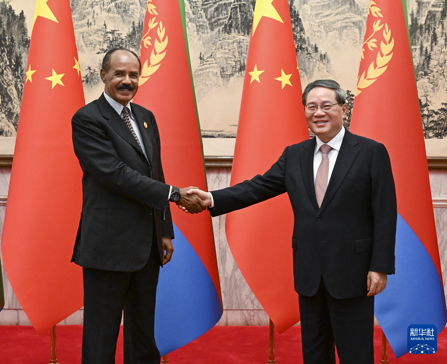 9月3日上午,國務(wù)院總理李強(qiáng)在北京釣魚臺國賓館會見來華出席中非合作論壇北京峰會的厄立特里亞總統(tǒng)伊薩亞斯。新華社記者 饒愛民 攝