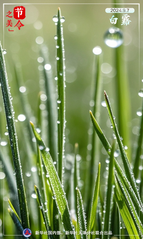 白露是秋季的第三個(gè)節(jié)氣,因秋氣漸深,溫差較大,接近地面的水蒸氣夜間遇冷凝結(jié)成水珠而得名。此時(shí)節(jié),已經(jīng)隨處可見(jiàn)晨光下散落在草葉上的晶瑩露珠。