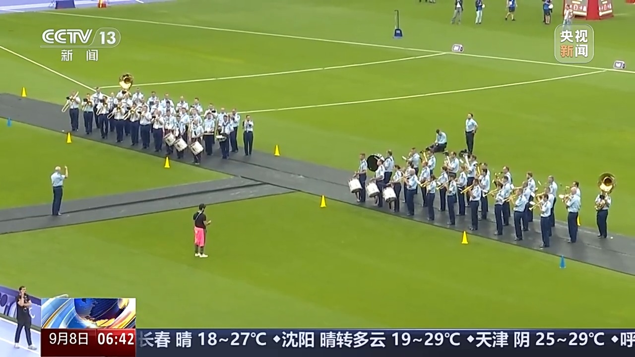 當(dāng)我走進(jìn)法蘭西體育場,就如同置身一片紫色的薰衣草花田,非常的唯美浪漫?,F(xiàn)在,場地中央有一支管樂隊(duì)正在進(jìn)行排練。我們想象一下,閉幕式當(dāng)晚,當(dāng)紫色跑道轉(zhuǎn)換成閃耀舞臺(tái),夜色中有了聲光電的加持,這里又將帶給觀眾一場怎樣的視覺盛宴呢?