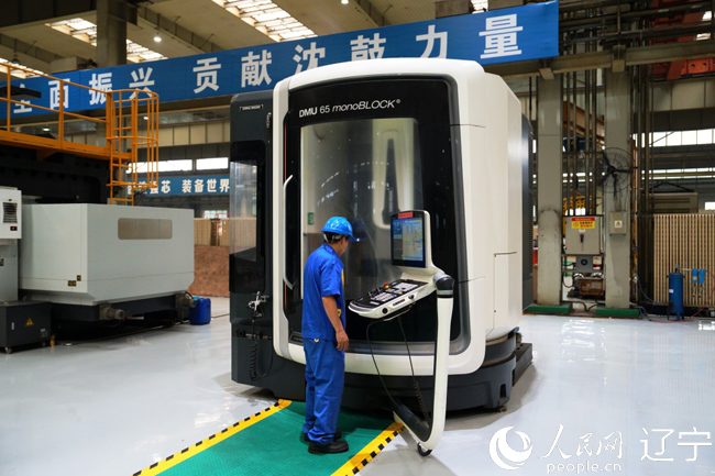 技術人員在沈鼓生產車間里調整設備參數。人民網記者 邱宇哲攝
