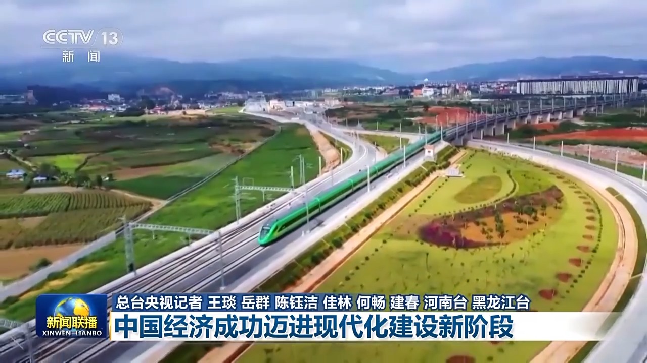 今年是中華人民共和國(guó)成立75周年。75載風(fēng)雨兼程,75載崢嶸歲月,中國(guó)共產(chǎn)黨領(lǐng)導(dǎo)下的新中國(guó)由一窮二白到全面小康,創(chuàng)造了世所罕見的經(jīng)濟(jì)快速發(fā)展奇跡和社會(huì)長(zhǎng)期穩(wěn)定奇跡。黨的十八大以來(lái),以習(xí)近平同志為核心的黨中央團(tuán)結(jié)帶領(lǐng)全國(guó)各族人民接續(xù)奮斗、砥礪前行,成功推進(jìn)和拓展了中國(guó)式現(xiàn)代化,中華民族迎來(lái)了從站起來(lái)、富起來(lái)到強(qiáng)起來(lái)的偉大飛躍,中華民族偉大復(fù)興進(jìn)入了不可逆轉(zhuǎn)的歷史進(jìn)程?!缎侣劼?lián)播》今天推出系列報(bào)道【奮進(jìn)強(qiáng)國(guó)路 闊步新征程】,首先來(lái)看《中國(guó)經(jīng)濟(jì)成功邁進(jìn)現(xiàn)代化建設(shè)新階段》。