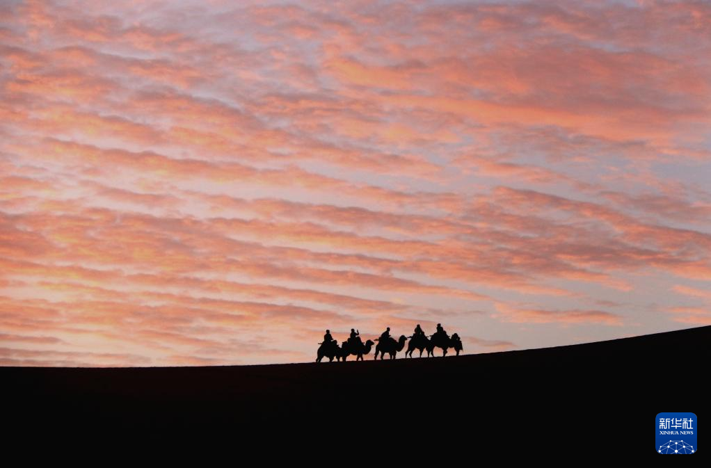 9月15日,游客在甘肅省敦煌市鳴沙山月牙泉景區(qū)游覽。