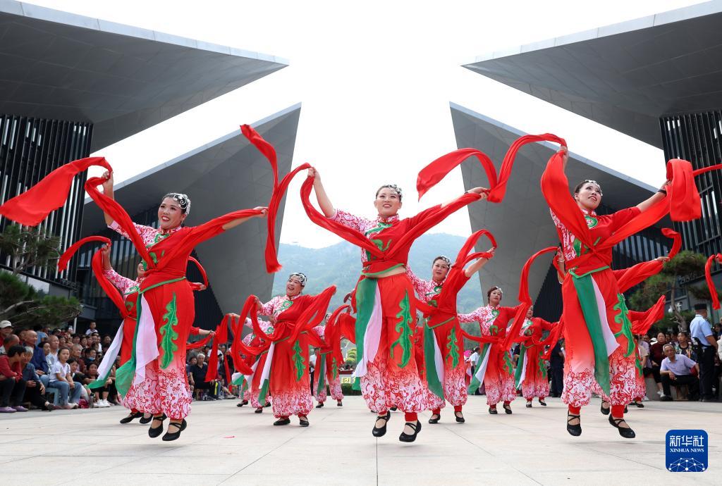 9月17日,在河北省石家莊市平山縣光祿山風(fēng)景區(qū),當(dāng)?shù)厝罕姙橛慰捅硌菅砀琛?/p>