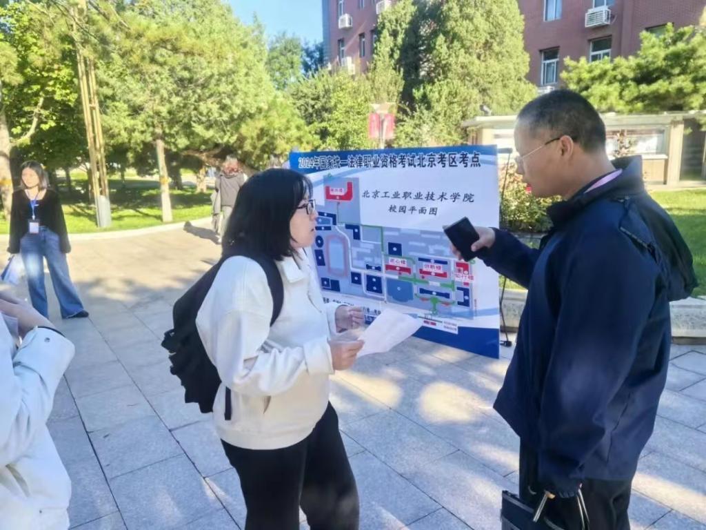 9月21日,考生經過身份核驗進入2024年法考北京考區(qū)考點。(北京市司法局供圖)