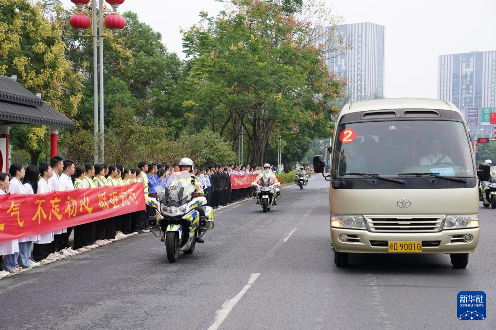 9月25日,載有黃公略烈士遺骸的車輛從吉安市青原區(qū)市區(qū)經(jīng)過(guò),市民在街道兩旁送別。新華社記者 周密 攝