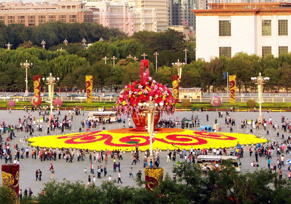時(shí)間撥回1984年,天安門廣場頭一次出現(xiàn)花壇,當(dāng)時(shí)僅以擺放花帶、花堆的平面形式呈現(xiàn),花色相對單調(diào)。1986年國慶節(jié),名為“孔雀開屏,龍的傳人”的花壇亮相天安門廣場,這是首次嘗試搭建立體花壇。隨著改革開放的不斷深入,我國發(fā)展日新月異,國慶花壇也隨之蝶變,2008年時(shí),近10米的傳統(tǒng)宮燈造型花壇現(xiàn)身天安門廣場,造型逐漸凸顯立體感、層次感。