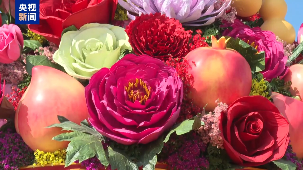 北京市園林綠化局城鎮(zhèn)綠化處二級調(diào)研員 宋學民:首次增加了蔬菜,變成了蔬果花籃,里面加上了富有吉祥寓意的南瓜、葫蘆,還有紅辣椒,紅紅火火,象征著豐收。再加上蔬菜、水果和鮮花,構成了蔬果花籃,寓意繁花似錦,蔬果飄香。