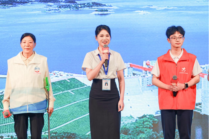 “我們將踐行總書記的囑托,繼續(xù)弘揚志愿服務精神,當好‘守井人’,確?!汇逅览m(xù)北送’!”9月24日,漢江師范學院九色鹿守水護水志愿者吳勇、丹江口市均縣鎮(zhèn)清漂員張旭春、丹江口水質(zhì)安全保障中心監(jiān)管大廳負責人余丹、丹江口市六里坪鎮(zhèn)財神廟村的護河員秦立萍和漢江師范學院志愿者瞿德齊,5位南水北調(diào)“守井人”來到2024年“總書記的話記心上”大思政課活動現(xiàn)場,向廣大學子講述了他們守水護水的故事,并共同宣誓繼續(xù)當好“守井人”。