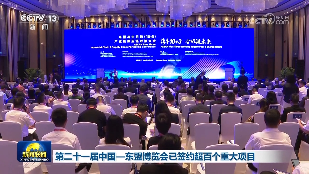 第21屆中國(guó)—東盟博覽會(huì)正在舉行。本屆東博會(huì)已簽約100多個(gè)重大項(xiàng)目。其中,中馬“兩國(guó)雙園”大宗商品類項(xiàng)目達(dá)成近430億元合作協(xié)議總貿(mào)易額,東盟—中日韓(10+3)產(chǎn)業(yè)鏈供應(yīng)鏈對(duì)接大會(huì)促成合作意向190多項(xiàng),金額超21億美元。9月26日還舉行了2024中國(guó)—東盟青年領(lǐng)軍者圓桌對(duì)話會(huì)。