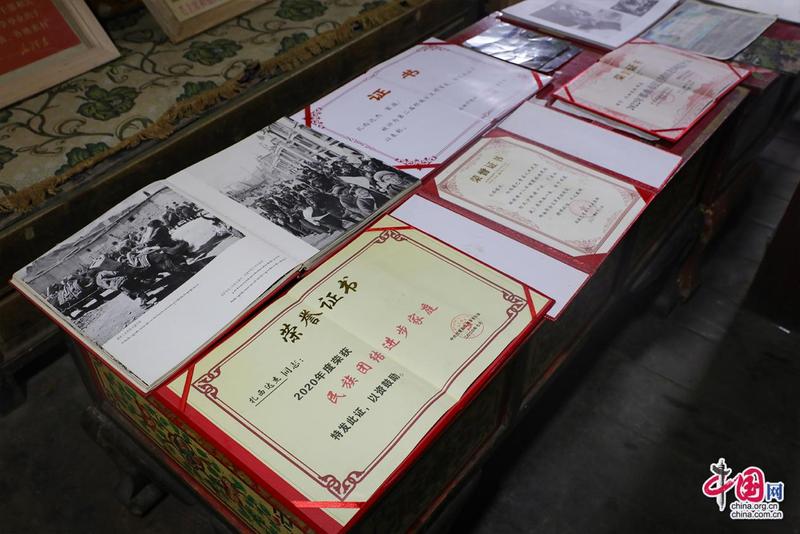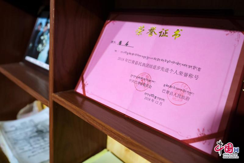 “記憶里的珍珠”紅色收藏紀(jì)念館創(chuàng)辦人扎西達(dá)杰所獲榮譽(yù)證書(shū)。中國(guó)網(wǎng)記者鄭偉攝