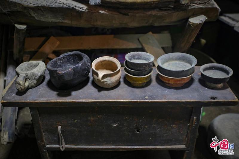 “記憶里的珍珠”紅色收藏紀(jì)念館內(nèi)景·藏式碗具。中國(guó)網(wǎng)記者鄭偉攝
