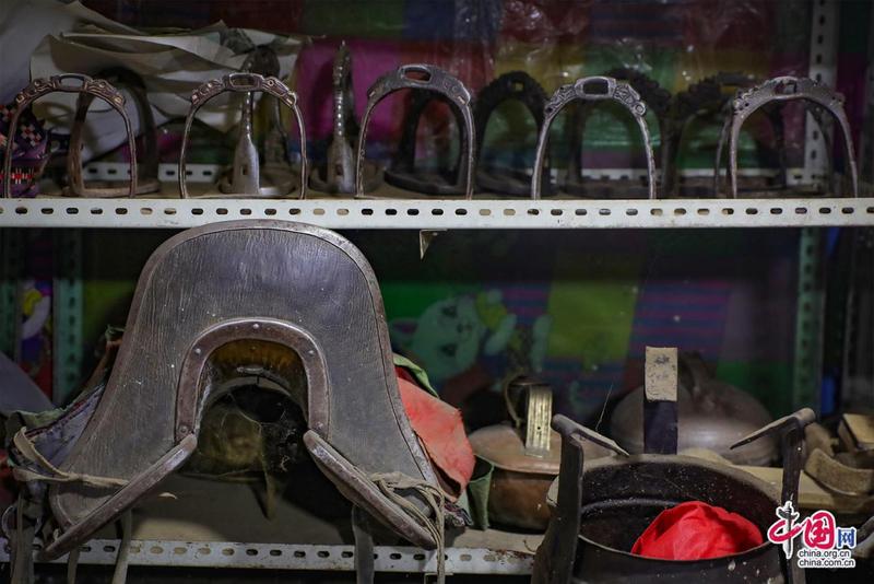 “記憶里的珍珠”紅色收藏紀(jì)念館內(nèi)景·馬具用品。中國(guó)網(wǎng)記者鄭偉攝