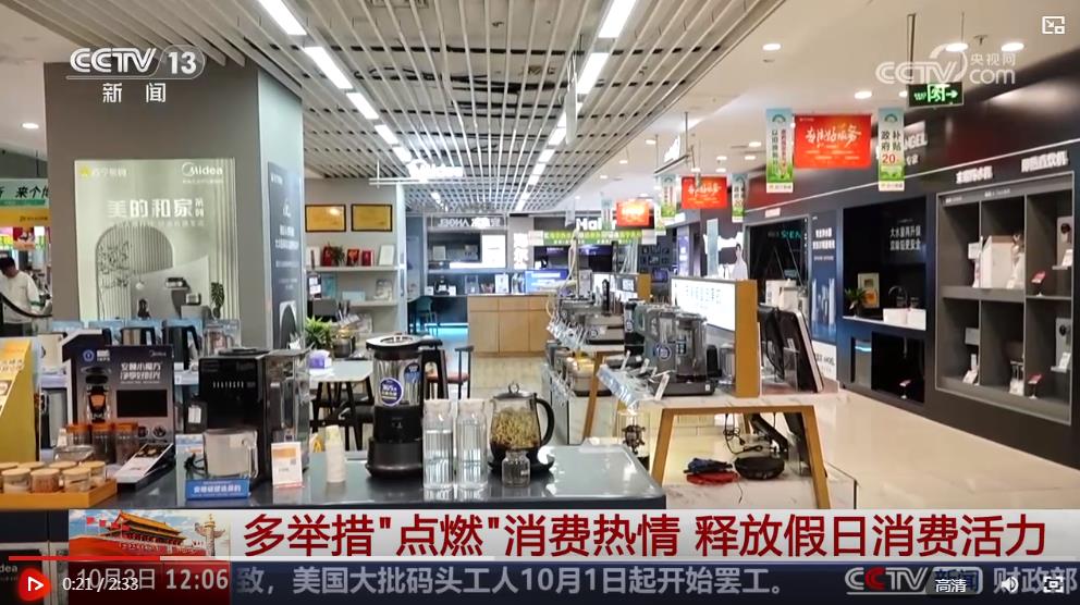 央視網(wǎng)消息:國(guó)慶假期開啟,消費(fèi)市場(chǎng)也迎來了旺季。各地紛紛加大力度滿足節(jié)日市場(chǎng)供給、保障好節(jié)日需求。同時(shí),創(chuàng)新供給方式、推出新的消費(fèi)場(chǎng)景、加大文旅產(chǎn)品供應(yīng),加力推進(jìn)消費(fèi)品以舊換新,進(jìn)一步激活市場(chǎng)。