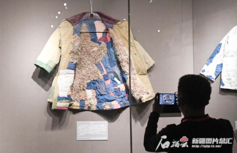 9月22日,游客在一件有著296塊補丁的軍大衣前駐足拍攝。(資料圖)石榴云/新疆日報記者 湯永攝