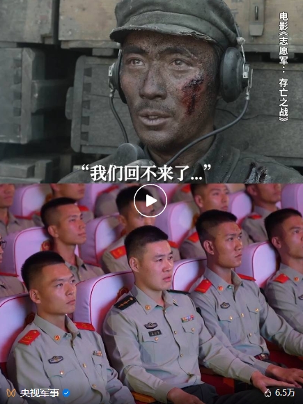 近日,武警北京總隊(duì)機(jī)動某支隊(duì)官兵觀看了電影《志愿軍:存亡之戰(zhàn)》。(該支隊(duì)特戰(zhàn)一中隊(duì)前身原隸屬電影中“英雄鐵軍”63軍188師,是這部電影中主要描繪的連隊(duì)原型。)在電影里,63軍188師營指導(dǎo)員李想說完“一營倒下了,我們回不來了,你們繼續(xù)前進(jìn)”,眼含熱淚的官兵響亮回答:“我們繼續(xù)前進(jìn)!我們繼續(xù)前進(jìn)!我們繼續(xù)前進(jìn)!”這一幕感動了眾多網(wǎng)友。